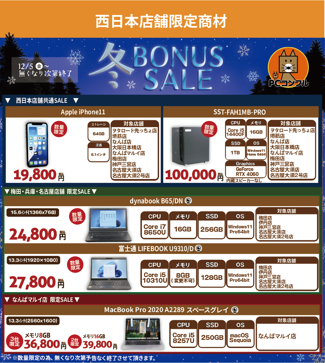 冬のボーナスセール開催