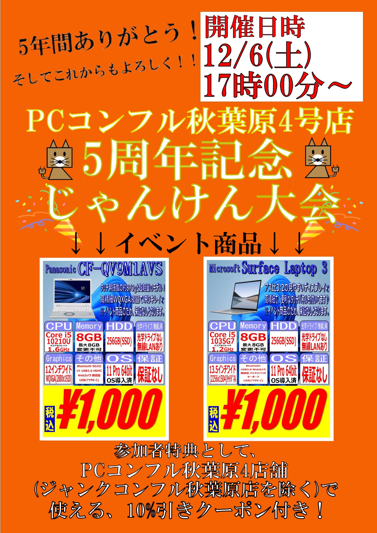 この度、PCコンフル秋葉原4号店は開店5周年を迎えることとなりました。