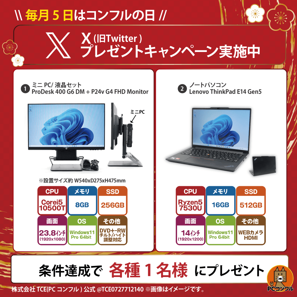 株式会社TCE(PCコンフル)X公式アカウントにてプレゼントキャンペーン開催中です。