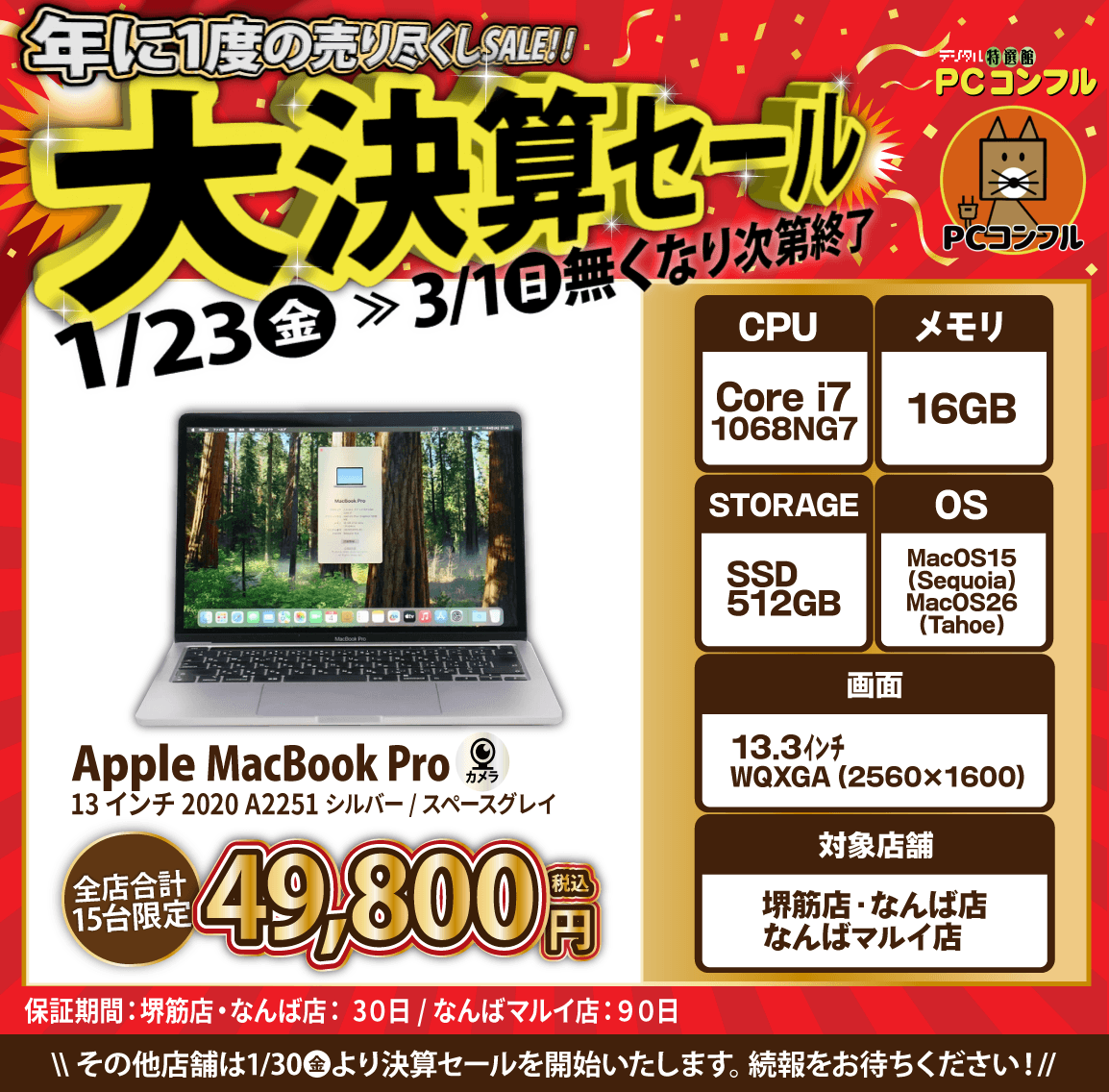 人気のMacBookが15台限定で49,800円の大特価です♪