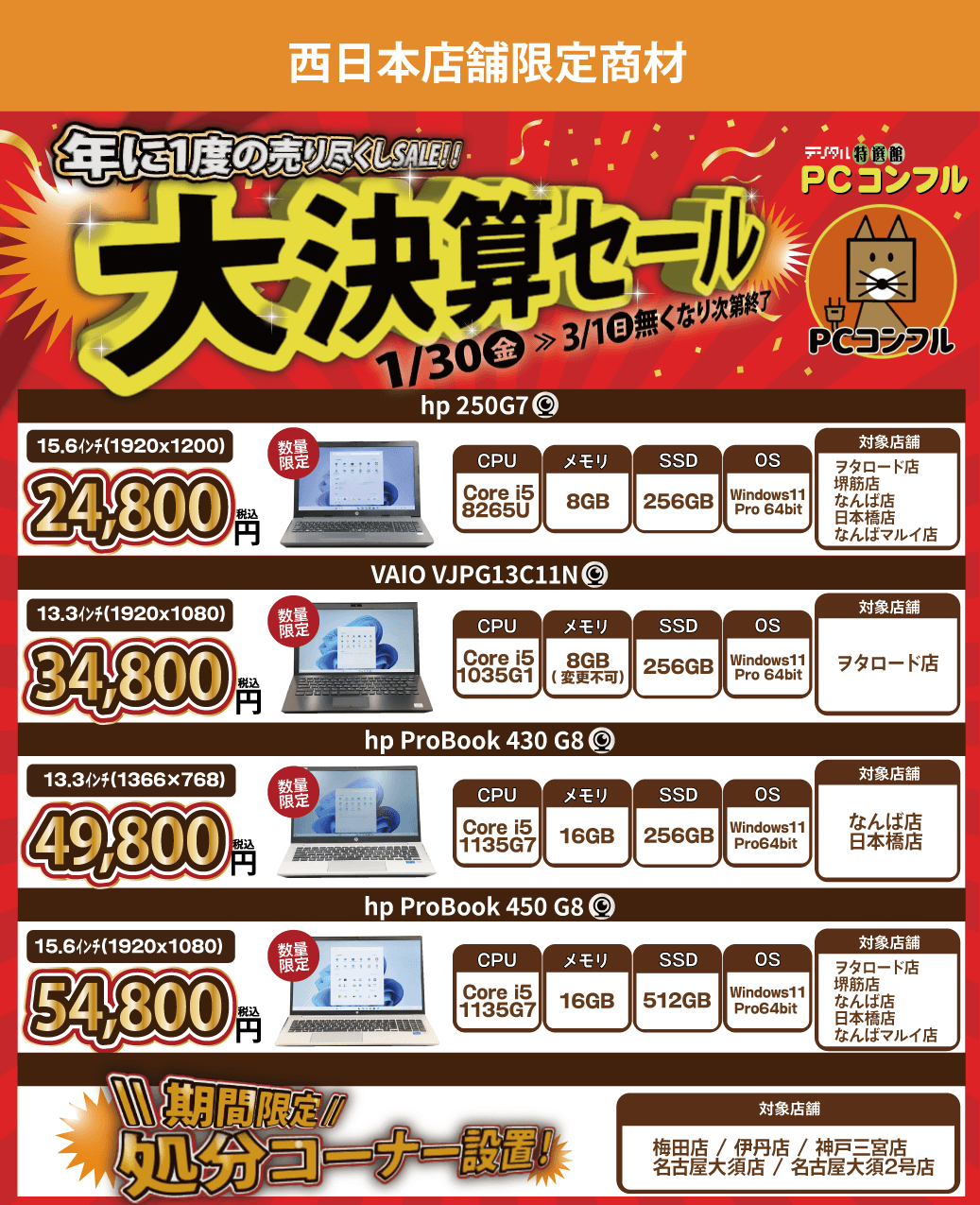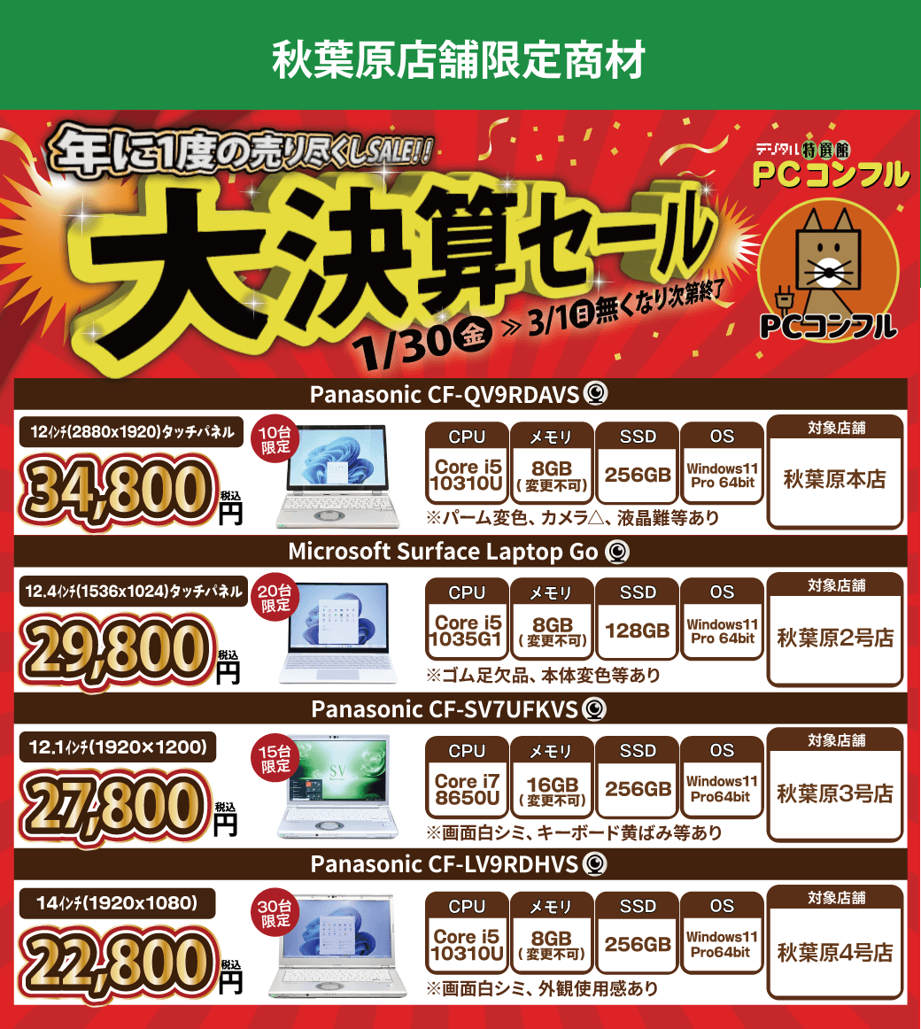 軽量で人気のレッツノートやメモリ16GB搭載PCまで、お買い得な大特価です♪