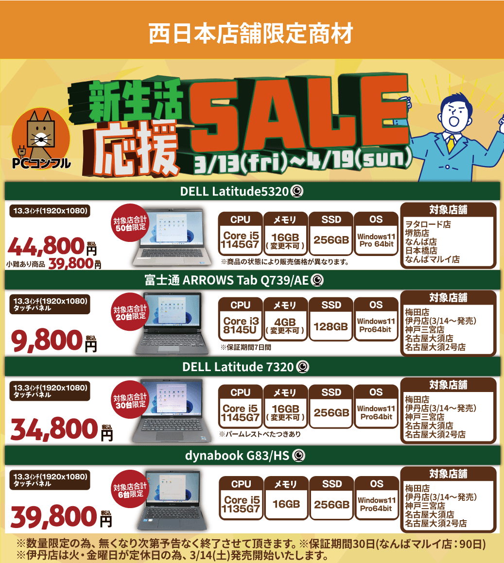 この度、西日本店舗にて3/13(金)より新生活応援セールを開催します!
