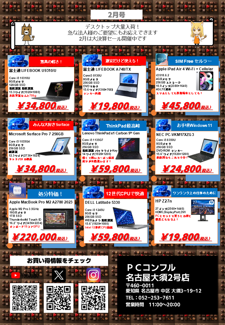 モバイルノートや、タブレットPC、デスクトップPC、ゲーミングPCやMac製品、モニター、サプライ商品、PCパーツなどなど幅広く品揃え!!!